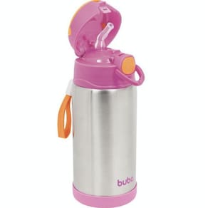 A Garrafa Térmica 400ml da Buba é resistente, higiênica e fácil de limpar. Ideal para levar em passeios e viagens. Características: -Mantém a temperatura dos líquidos fria ou quente por até 5 horas - Parede dupla em aço inoxidável - Trava de segurança para a tampa - Base em silicone antiderrapante - Bico em silicone - Livre de BPA. - 100% Aço inoxidável - Cor: Rosa com detalhes em laranja - Canudo - Para maiores de 3 anos Medidas aproximadas do produto - Comprimento: 8 cm - Altura: 18 cm - Largura: 7 cm - Peso: 220 g Ean: 7908103713847