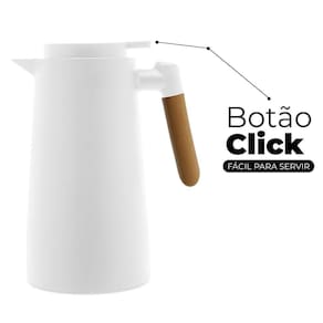 Facilidade para servir com botão click, o que significa que você não precisa ficar o tempo todo desrosqueando para despejar o líquido, basta clicar no botão e derramar o líquido e então clicar novamente para fechar, garantindo assim uma maior duração de conservação da bebida e uma maior tecnologia ao produto.