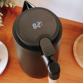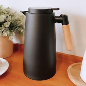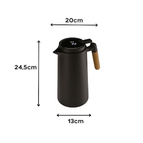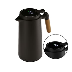 Garrafa Térmica de Café com Termômetro Digital Cabo de Madeira e Botão para Servir Fosco 1 Litro
