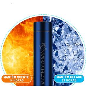 A Garrafa Térmica em Aço Inoxidável 304 Gold Sports Smart 500ml com bocal anatômico. Muito eficiente na conservação da temperatura de bebidas geladas ou quentes e também segura muito bem o gás de refrigerantes. A tampa, sem bem fechada, veda totalmente a garrafa, impedindo respingos e vazamentos, BPA FREE, confeccionada em dupla camadas de aço inoxidável - A Garrafa Térmica em Iaço inoxidável 304 Gold Sports Smart 500ml possui acabamento de altíssima qualidade, com uma incrível tela LED, localizada na tampa. sensível ao toque, ela te mostra, em tempo real, a temperatura interna da garrafa.