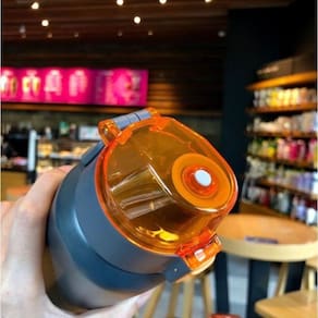 Garrafa térmica com Duplo aço inoxidável e Bico para facilitar na hora de beber.
