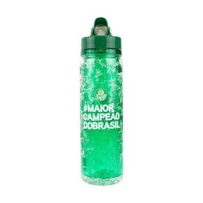 Garrafa de plástico com canudo e 580 ml de capacidade. Corpo revestido de gel congelante. Para tomar bebida bem gelada, congelar garrafa no freezer por até 4 horas. Vem na cor e escudo do Palmeiras. Material: plástico