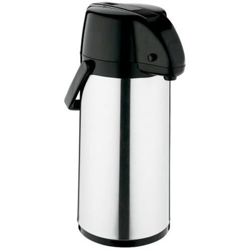 Corpo externo em aço inoxidável, acabamento escovado, tampa em polipropileno PP . Cobertura em verniz: não suja e nem deixa marcas, Sistema de servir por alavanca com alta eficiência, servindo até 400ml por acionamento, possui ampola de vidro, ideal para líquidos quentes e frios. Alça retrátil para transporte. Possui base giratória que facilita no momento de servir.