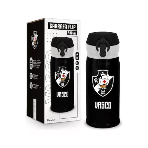 Com um prático botão de abertura da tampa e uma trava antivazamento, esta garrafa oferece facilidade e agilidade na hora de se hidratar. Além disso, possui design moderno na cor preta e branca, trazendo o escudo do Vasco estampado, é ideal para os super fãs desse incrível time!