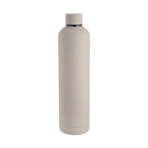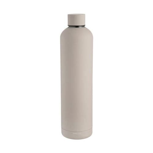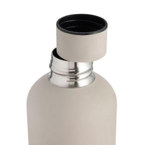 Produzido em aço inoxidável e tampa em plástico, com capacidade para 1 L, com paredes duplas que prolongam a temperatura do líquido, com vedação em rosca e acabamento liso.