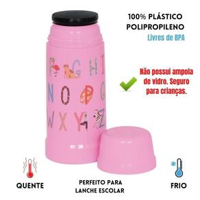 Garrafa Térmica Infantil 300ml Rosa Algodão Alfabeto Mor Garrafa Térmica Mini Mor Kids 300ml Rosa Algodão doce Alfabeto Aprecie os sabores da infância com a Mini Mor Kids Decorada com Alfabeto animado Com cores dedicadas às crianças, proporcione toda a praticidade para que a criançada esteja pronta para aquele piquenique no parque, na escola para viagens, para visitar a vovó.. Ideal para uso infantil, a Garrafa Térmica Mini Mor Kids conta com grande diferencial na forma de produção. Com fabricação própria na matriz da empresa, ela foi projetada com design exclusivo e desenvolvida em polipropileno virgem injetado que lhe conferem alta qualidade, resistência e durabilidade. A Mini Mor Kids possui isolamento térmico em EPS, que conserva a temperatura, e tem capacidade para 300ml, perfeita para a criançada levar na hora do recreio ou em qualquer passeio. Além de prática de carregar ela é fácil de servir, pois conta com abertura em rosca e tampa que serve como copinho e está disponível em cinco cores. Escolha já a sua INFORMAÇÕES GERAIS: Material: Polipropileno Cor: Rosa decorda Capacidade: 300 ml Altura: 20 cm Largura: 8,5 cm Peso: 0,218 gr TEMOS TODAS CORES. Todas as Garrafas Térmicas e Bules da Mor são livres de BPA. ATENÇÃO: Não contém ampola de vidro, ideal para uso infantil Temos todas as cores DE FABRÍCA: 90 dias para vícios ou defeito de fabricação. Distribuído por Print Web Store A mais de 15 anos no mercado entregando produtos de qualidade a nossos clientes. Marca: Não Informado Ean: 7898580991350