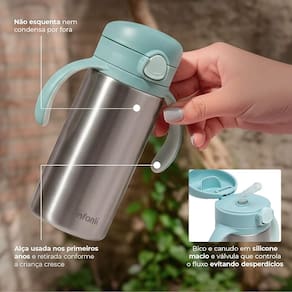 -Capacidade de 280 ml, na medida certa para caber na bolsa e manter o pequeno sempre hidratado.