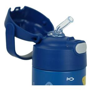 Projetada para mãos pequenas, a Thermos Funtainer F410 permite que a criança abra e feche com facilidade usando apenas uma mão, graças ao seu sistema de abertura intuitivo, ergonômico e higiênico, já que a tampa permanece fechada após o uso, sem contato com o ambiente. O canudo de silicone macio proporciona um toque suave ao beber, enquanto a alça externa integrada facilita o transporte, perfeita para a escola, passeios e atividades ao ar livre.