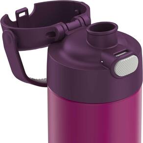 Seu sistema de abertura com botão de pressão e o bico rígido confortável, que não vaza, garantem praticidade e higiene, mantendo o bico coberto quando não está em uso. A alça de transporte integrada, com pega suave, permite fácil mobilidade, enquanto o design robusto e leve facilita o uso no dia a dia, seja na escola, em passeios ou atividades esportivas. Com capacidade de 470 ml, esta garrafa é a maior da linha Thermos Kids, perfeita para crianças maiores que precisam de mais hidratação durante o dia.