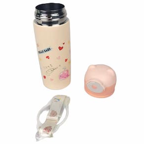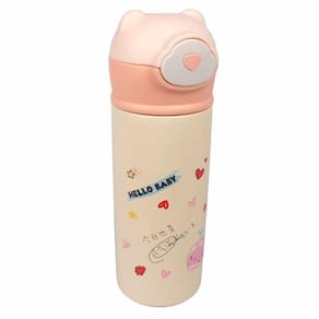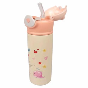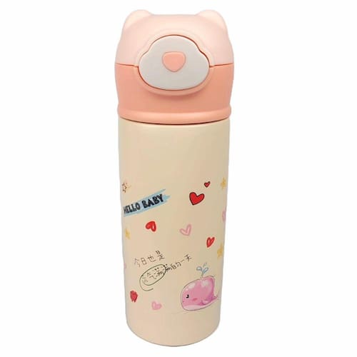 Linda garrafa térmica infantil. Feita em aço inox. Com estampas bem vívas. Tampa em formato de orelhinha e botão para abertura automático após pressão.