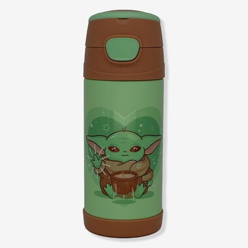 Garrafa Térmica Infantil Top Handle Baby Yoda Star Wars Se você quer incentivar o seu filho a se hidratar, essa é a companhia perfeita para ele! Com 350ml de capacidade, acompanha ele em todas as aventuras na escolinha e nos momentos de diversão! O produto é importado, com detalhes que vão deixar você e seu filho encantados! É perfeita para acompanhar a rotina do seu pequeno, feito em aço inoxidável, mantém a temperatura da bebida gelada por 12 horas e quente por 10 horas! Contém uma tampa rosqueavel com trava em click para não abrir durante o transporte, possui um canudo em silicone e uma alça para facilitar a hora mais refrescante do dia! Não importa se é na escolinha ou na hora da diversão, essa garrafa acompanha todos os passos do seu filho!