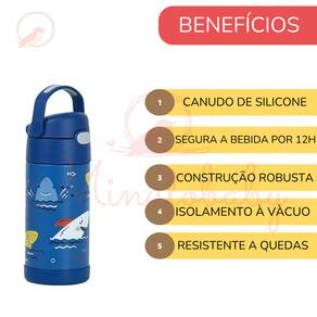 Material: Aço inoxidável e plástico BPA Free Retenção para frio: 12 horas Estampa: Tubarão Capacidade: 355 ml Peso: 240g Dimensões: 16cm x 7cm x 7cm (A x L x P)