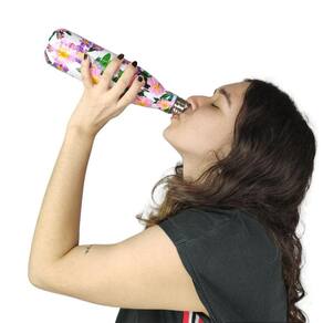 A garrafa térmica, é feita com material 100% Aço inox, conservando totalmente a sua bebida, mantendo na temperatura ideal por mais tempo. Ainda vem com uma tampa rosqueável com vedação em silicone, evitando vazamento. Além disso, ela tem um designer super moderno, com estampas.