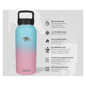 A garrafa térmica pe 24oz é um complemento necessário para suas caminhadas matinais, passeios de bicicleta, treinos e viagens diárias. Esta garrafa resistente é isolada a vácuo de parede dupla para manter a água fria até o último gole, pode ser lavada na máquina de lavar louça para facilitar a limpeza e vem como padrão com a tampa do chug.Garrafa térmica inox 946ml 32oz com tampa rosa e azul - qgka versão qgk da garrafa térmica pl 32 oz 946 ml, é projetada para manter suas bebidas em temperaturas desejadas por muito tempo, sendo quentes até 8 horas ou geladas até 12 horas . Fabricada em aço inox 18/8, e tampa rosqueável de giro rápido, seu design único e inovador, traz o toque extra de proteção, evitando que o calor ou frio escape.Resistente a batidas, perfurações, ferrugem e degradação natural.Produto livre de bisfenol a. 100% bpa free.Graças às paredes duplas isoladas a vácuo, você transpira, mas ela nunca.Simples de lavar é também resistente para ser lavada na máquina de lavar louças.Informações técnicas:marca: qgkmodelo: garrafa térmica pl 32 oz 946 ml qgk com tampacores disponíveis: rosa/azul,dimensões: comprimento 9cm x largura 9cm x altura 22cm s/ tampa e 27cm c/ tampa peso: 398 gramas
