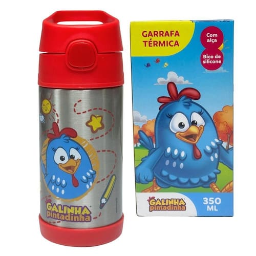 Garrafa térmica inox click canudo 350ml galinha pintadinha Garrafa térmica inox click canudo 350ml galinha pintadinha Estampada com a adorável galinha pintadinha, essa garrafa térmica é perfeita para manter as bebidas das crianças na temperatura ideal durante a escola, creche ou passeios. Design oficial: estampa oficial da galinha pintadinha, tornando a garrafa atraente para os pequenos. Isolamento térmico eficiente: mantém suas bebidas quentes ou frias por mais tempo, graças ao seu sistema de inox parede dupla de alta qualidade. Tampa com sistema click: tampa prática com sistema de abertura click, facilitando o uso e prevenindo vazamentos indesejados. Canudo integrado: acompanha canudo interno, proporcionando maior comodidade ao beber. Produto oficial licenciado: de autenticidade e qualidade, perfeito para presentear ou para uso pessoal. Não importa se é na escolhinha ou na hora da diversão, essa garrafa acompanha todos os passos do seu filho Especificações: Tamanho aproximado: altura: 18cm e diâmetro: 7cm Material: aço inoxidável Capacidade: 350ml Marca: clio Modelo: click com canudo galinha pintadinha Cor: vermelha Marca: Não Informado Ean: 7908040481281