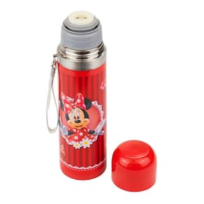 Garrafa térmica na cor vermelha gravada com a imagem da Minnie. Capacidade para 500 ml, tampa serve como copo para a bebida, que não pode ser tomada direto da garrafa. Mantém temperatura por até 2 horas a depender da temperatura ambiente. Material: plástico e inox Código DHB500-MK8-D Peso (Kg) 0.30 Altura (cm) 24.50 Largura (cm) 7.00 Comprimento (cm) 7.00