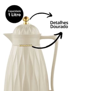 -01 unidade Garrafa Térmica para Café Khadija 1L - Bege com Detalhes Dourados de Luxo