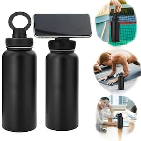 Garrafa térmica a vácuo com suporte magnético para celular 950ml - magsafe - fitness / academia / escritório Agora ficou mais fácil gravar seus treinos, seu esporte favorito ou assistir seus canais prediletos conheça a nova garrafa térmica com suporte para telefone celular / smartphone. Perfeita para levar junto contigo para todo lugar. - garrafa 100% aço inox 304 com tampa, bico e suporte para celular em plástico reforçado; - ajuste seu celular em 360 de giro e 90 de inclinação. Ideal para qualquer ocasião; - possui parede dupla com separação a vacuo de altissima qualidade, garantindo sua bebida gelada por mais de 30 horas e bebida quente por mais de 12 horas; - resistente a altas temperaturas; - possui design a prova de vazamento, com tecnologia drysec nas borrachas de vedação; - perfeito para gravar sua ginástica, exercícios físicos, atividades ao ar livre, viagens, escritório e muito mais. Características: - marca: magsafe - capacidade: 950ml - fabricada em aço inoxidável; - com isolamento térmico a vácuo; - tampa e bico rosqueável removível para higienização , pode ser levada ao congelador e lava louças; - bpa free livre de bisfenol a - livre de Cinza. - dimensões: altura 25 cm x largura 9 cm - peso: 435g - cor: preto Itens inclusos: 1 - garrafa térmica a vácuo magsafe com suporte celular 950ml 1 - anel magnético para celulares que não possui Marca: Não Informado