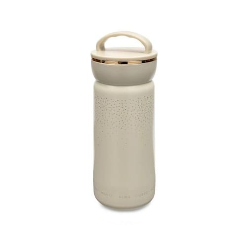 Garrafa Termica Poa Corpo Mente E Alma Apresentando um design delicado e uma estampa poá, nossa Garrafa Térmica Corpo Mente e Alma é perfeita para você que não abre mão do estilo e da sofisticação, nem durante as suas pausas para hidratação. Toda em metal e contando com uma tampa de plástico, ela tem capacidade para 350 ml e mantém sua bebida fria por até 12 horas e quente por até 6 horas.