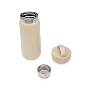 Contém 1 garrafa térmica e 1 manual de instruções. Não podem ser vendidos separadamente. Material: metal e plástico. Capacidade: 350 ml. Tamanho: 7 cm x 7 cm x 19 cm. Temperatura mínima e máxima: -20 C a 100 C. Mantém sua bebida fria por até 12 horas. Mantém sua bebida quente por até 6 horas. Lavar com água, esponja macia e detergente neutro. Não vai ao lava-louças, nem ao micro-ondas. Teme químicos e abrasivos. Validade indeterminada.