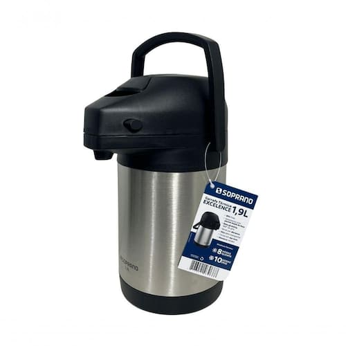 Ampola interna em para empresas, buffets, hotéis, restaurantes e eventos .Ótima para servir grandes grupos sem interrupções.Excelente opção para ambientes com alto consumo de café, chá ou água quente , como escritórios movimentados e salas de reunião.Desenvolvida para atender grandes demandas , a Garrafa Térmica Excelence 1,9 L - Soprano oferece alta capacidade e excelente conservação térmica, tornando-se a escolha ideal para ambientes que exigem praticidade e desempenho Capacidade ? Com 1,9 litros, é ideal para eventos, escritórios, buffets e estabelecimentos comerciais , reduzindo a necessidade de reabastecimento.
