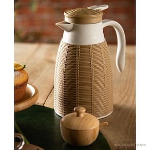 Com seu revestimento de rattan marrom natural, esta garrafa térmica combina estilo e funcionalidade. Além disso, o plástico resistente garante durabilidade e facilidade de limpeza.