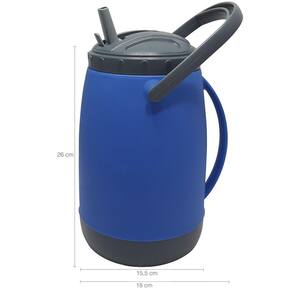 Garantia: 90 Dias / Peso: 560g / Cor: Azul e Cinza / Ref: 9003110055 Capacidade: 2,5 Litros Dimensões: 18cm (C) x 15,5cm (L) x 26cm (A) Altura com alça erguida: 37,5cm Abertura do Bocal: 12cm Eficiência térmica: 4 horas.