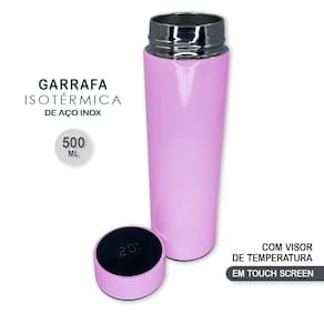 01 Garrafa Térmica com Termômetro Digital 500ml Rosa