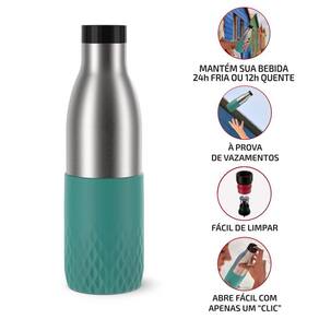 Sua bebida na temperatura ideal com apenas um ""clic"" usando a Garrafa Térmica Tefal Bludrop Verde 700ml, que mantém sua bebida por até 24h fria ou 12h quente. Esta garrafa, feita de aço inoxidável durável com acabamento em silicone, não só oferece estilo, mas também muito mais firmeza e segurança no seu dia a dia. Design feito 100% à prova de vazamentos, torna o transporte fácil e sem preocupações. Botão abre e fecha fácil com apenas um ""clic"", centralizado na tampa para não entrar em contato com a sua bebida. Diferenciais: - Mantém sua bebida 24h fria ou 12h quente. - Abre fácil, com apenas um ""clic"" - À prova de vazamentos. - Acabamento em silicone, muito mais firmeza. - Compatível com máquina de lavar louças. - Aço inoxidável: Material com isolamento térmico e resistente. - Fácil de limpar: Tampa totalmente desmontável. Desfrute da praticidade e elegância, garantindo que sua bebida esteja sempre na temperatura ideal em um ""clic"" com a Garrafa Térmica Tefal Bludrop Verde de 700ml.
