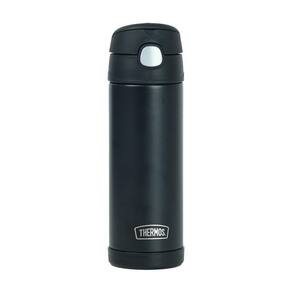 Thermos Garrafa de aço inoxidável Funtainer Preto - 470 ml A garrafa Thermos Funtainer possui construção em aço inoxidável de parede dupla que mantém sua bebida gelada por até 12 horas. Construído de forma durável para lidar com quedas, mossas e agressões, inclui uma alça de transporte integrada com uma pega de toque suave. Inclui uma alça de transporte integrada que pode ser dobrada para baixo quando não estiver em uso. À prova de condensação. À prova de mofo. Não para uso com líquidos quentes. Aço inoxidável/borracha. Máquina de lavar louça segura. 470 ml capacidade.
