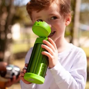 - A linha Thermos Kids oferece lancheiras e potes que combinam com a garrafa, permitindo criar um conjunto completo para o dia a dia. Conheça os outros produtos Verde e se encante pelo mundo Thermos Kids.