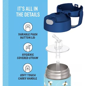 Com uma estampa encantadora de abelhas, a Garrafa Térmica Infantil Thermos Funtainer F410 vai conquistar o coração dos pequenos! Além disso, a tampa é cambiável e compatível com outras garrafas da linha Thermos Kids, permitindo que você personalize o conjunto com lancheiras e potes coloridos da marca.