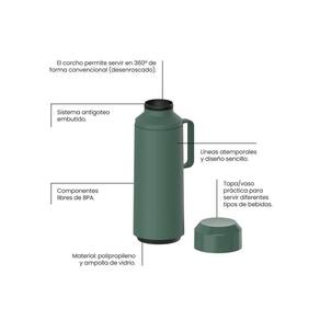 Garrafa Térmica Tramontina Exata em Polipropileno Verde com Ampola de Vidro e Tampa Rosqueável 1 L