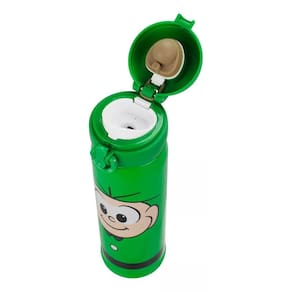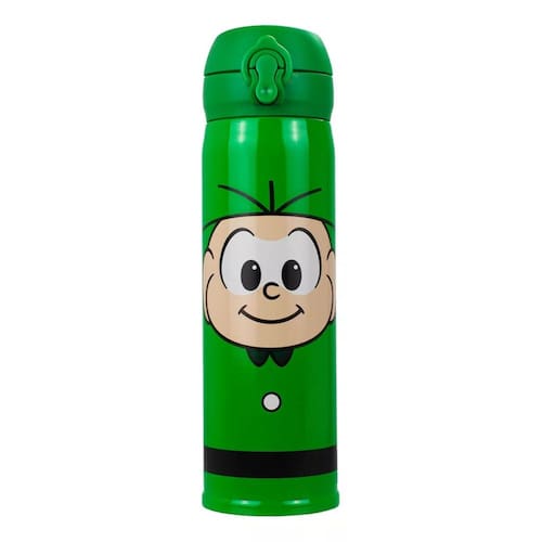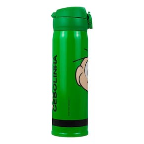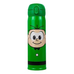 Garrafa de inox térmica com capacidade pra 400 ml. Na cor verde, vem estampada com rosto do Cebolinha, personagem dos quadrinhos Turma da Mônica. Garrafa ideal para manter temperatura do líquido e servir em copo, tempo de duração de até 6 horas a depender da condição inicial do ambiente e quantidade de aberturas. Tampa com trava. Material: inox Código: MQH043-2-MCPeso: 230gAltura: 22,5cmLargura: 7cmComprimento: 6cm