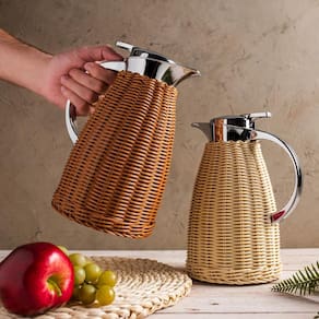 Garrafa Térmica de Aço Inox com Rattan Plático Marron 1,5L