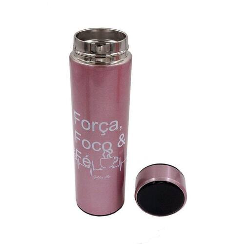 Garrafa Termômetro Térmica Inox Display Led A Vácuo Rosa Metálico Descrição: Nossa Garrafa térmica além de ser super elegante e inovadora mantém a temperatura do liquido, ainda possui um termômetro na tampa, com tela de Led, onde você pode sempre verificar a temperatura da sua bebida tocando na tela. A Garrafa mantém 12 horas de água quente ou fria, e possui um sistema que impede vazamento Perfeita para todos os momentos, viagens, esportes, trabalho e escola