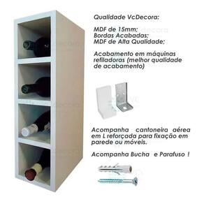 Nicho Garrafeiro Aéreo 100% MDF com acabamento em BP, estrutura em MDF para mais resistência e durabilidade, acabamento Fosco, ideal para organizar seu ambiente armazenando até 4 garrafas, perfeito para deixar a sua cozinha exclusiva e bonita.