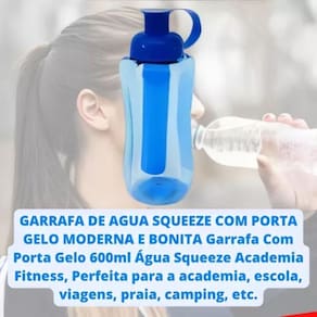 Possui capacidade para 600 ml de água, tampa com trava de fechamento e acompanhada de um tudo de gelo para deixar sua bebida bem refrescante, proporcionando qualidade e segurança para levá-la para academia, camping, parque, corridas, vários lugares, mesmo preenchida com líquido.