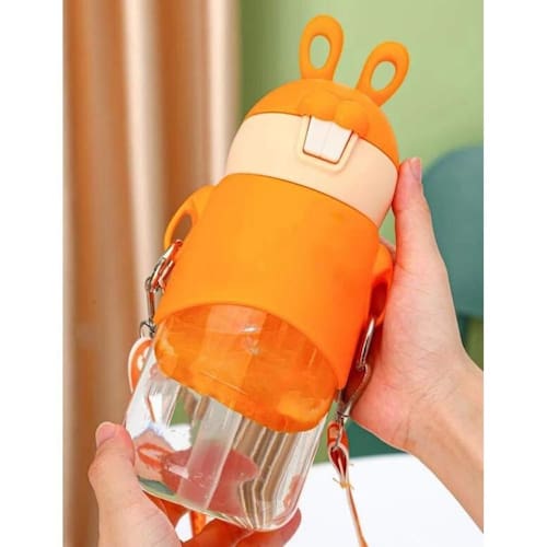 Garrafinha de água temática infantil garrafa kids coelho Cor: laranja a garrafa de coelhinho possui um design lindo e fofo no qual podemos amam carregar para todo lugar de forma divertida, pois a garrafa acompanha uma alça de sustentação ajustável podendo ser levada com segurança, de forma fácil e sem medo de perder. o material é de vidro, super resistente e possui os detalhes no design de silicone em formato de coelho. possui canudo para melhor facilitar na hora de beber, alem de ter uma proteção maior na parte do tampa garantindo que a garrafa não vaze. ------------------ Atenção ------------------ Recomendamos lavar com água quente antes do primeiro uso. Modo de uso: 1- para abrir basta apertar no dentinho da garrafa. 2- você pode retirar/colocar a alça pelo mosquetão. ------------------ Perguntas frequentes ------------------ a garrafa vaza R: possui uma proteção maior na parte da tampa garantindo que a garrafa não vaze. quantos ml cabe na garrafa R: 600ml. qual o material da garrafa R: a garrafa é de vidro. a garrafa possui adesivo R: sim, a garrafa acompanha adesivo . ------------------ Especificações ------------------ Altura: 23cm. Largura: 8cm. Capacidade: 500ml. Material: vidro e silicone. ------------------ Conteúdo ------------------ 1x garrafa. 1x canudo 1x alça de sustentação. 1x adesivo . Anúncio referente a garrafa ------------------ Apresentação: ------------------ Atuamos no mercado desde 2019 como loja de departamentos. Nosso principal compromisso é sempre estar inovando e oferecendo variados produtos com qualidade incomparável, para que você tenha uma experiência mágica e única ao obter os nossos produtos. Todos os nossos produtos passam por um amplo teste de qualidade antes de serem vendidos. Os produtos são testados e vistoriados antes de serem enviados aos clientes, para não ocorrer transtornos. Procuramos embalar os produtos da melhor forma possível, para que o mesmo não venha sofrer durante o transporte e corra o risco de chegar danificado ao consumidor. Nossa equipe é totalmente qualificada e estaremos a disposição para esclarecer as suas dúvidas, solucionar os seus problemas e fornecê-los o melhor atendimento possível. - qualidade garantida. - atendimento qualificado. - enviamos para todo o brasil. - compra garantida. - despachamos em até 1 dia útil após confirmação do pagamento garantimos a devolução por arrependimento em até 7 dias, após o recebimento e de 15 dias contra defeitos de fabricação. Marca: Star Capas E Acessórios