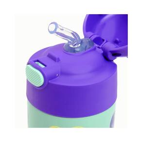 Conteúdo: 1 Garrafa Thermos Funtainer F410 com tampa, alça e canudo de silicone (substituível).