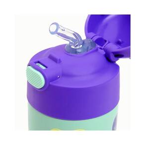 Conteúdo: 1 Garrafa Thermos Funtainer F410 com tampa, alça e canudo de silicone substituível .