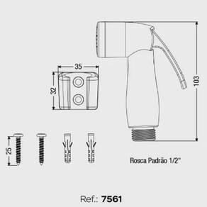 Dados Técnicos Ducha produzida em plástico de engenharia (ABS) e aço inox Suporte produzido em plástico de engenharia (ABS) Rosca macho: 1/2” Embalagem: saco plástico Ean: 7898128479753