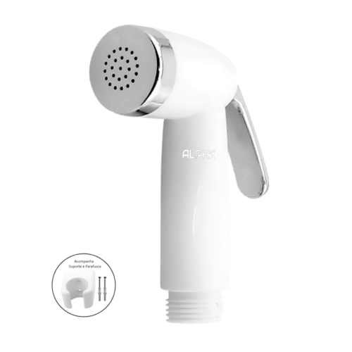 Gatilho de Ducha Higiênica Chuveirinho Branco ABS + Suporte Brinde