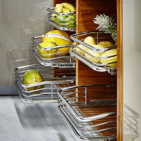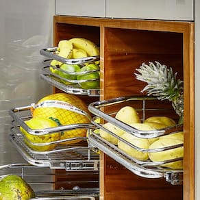 Esta gaveta multiuso possui design moderno e inovador, com corrediças laterais que facilitam o acesso ao seu conteúdo e tornam sua cozinha ainda mais funcional. Pode ser utilizada para armazenar utensílios, alimentos, produtos de limpeza ou ainda como fruteira aramada. Produzida em aço inox com acabamento em alto brilho, se adaptando facilmente ao móvel onde será feita a instalação.