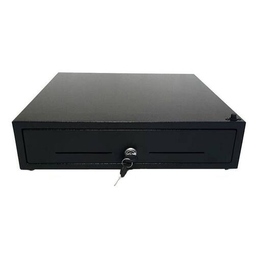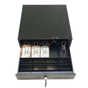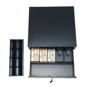 Gaveta caixa para dinheiro preto pino superior acionamento manual abertura horizontal