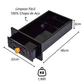 01 Gaveta Cinzeiro Lareira Chapa Aço Preta Colonial 46x32x6cm.