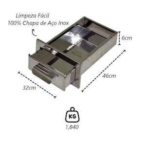 Gaveta Cinzeiro Lareira Chapa de Aço Inox Popular 46x32x6cm