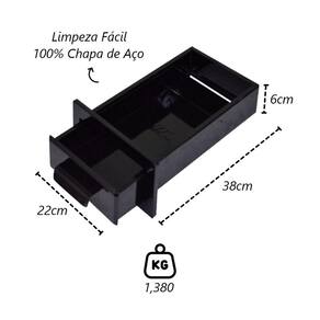 Gaveta Cinzeiro Lareira Chapa de Aço Preta Popular 38x22x6cm
