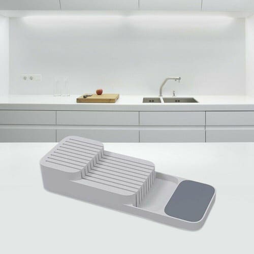 Este organizador de facas de 2 camadas é a solução perfeita proporcionando armazenamento seguro e fácil acesso a uma variedade de facas de cozinha.