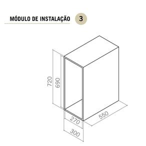 Dimensões necessárias no módulo de instalação: 55cm (C) x 30cm (L) x 72cm (A);